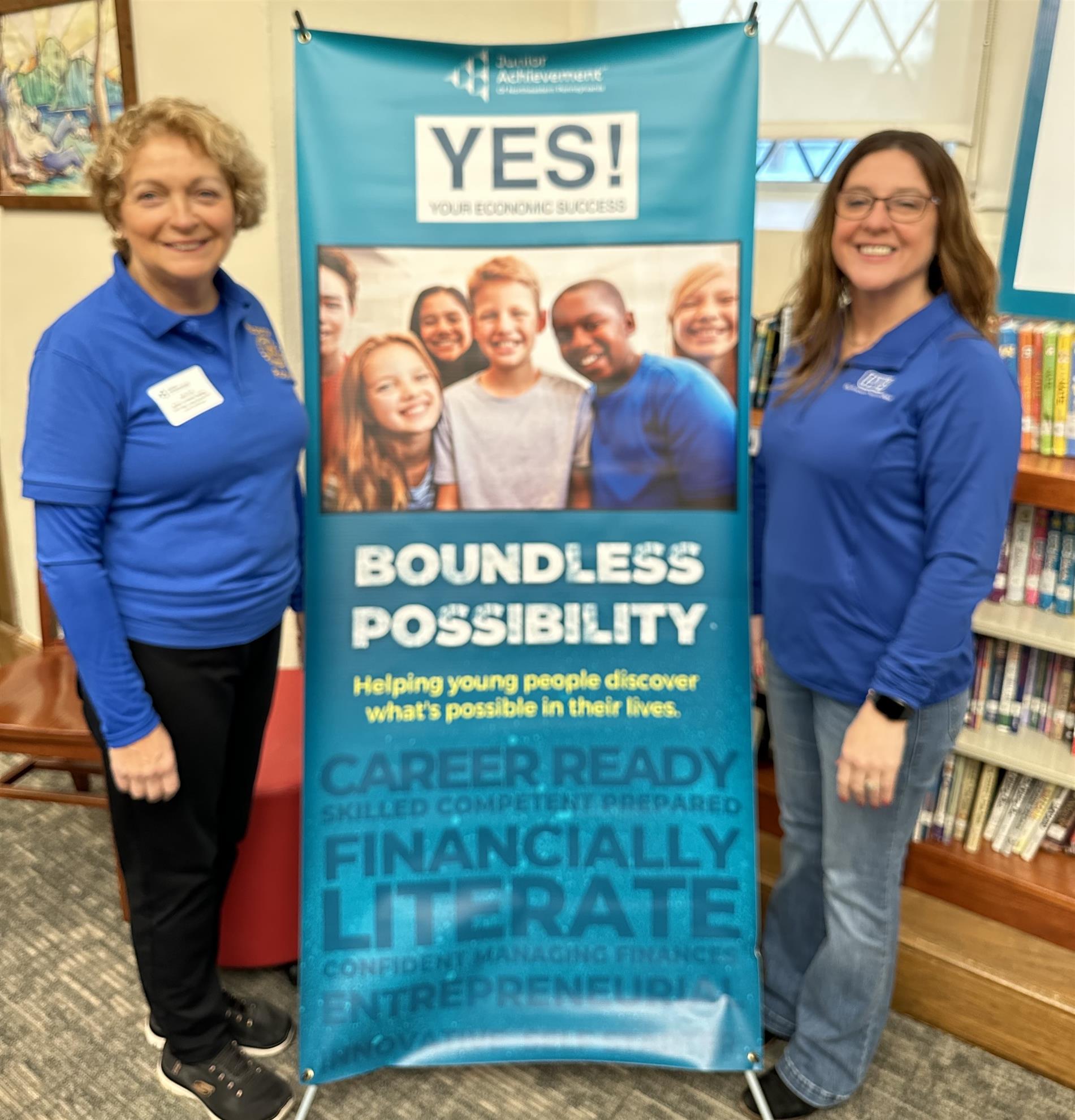 At the Hazleton Middle School, aka “The Castle”, two Hazleton Rotarians, Anne Frey and Jessica Spare, gave their volunteer time to teach breakout sessions with 7th and 8th grade students as part of the Y.E.S. (Your Economic Success) Program sponsored by Junior Achievement. This program would not be possible without community volunteers, such as Jessica and Anne. 30 volunteers were needed in order to make the program happen in Hazleton.