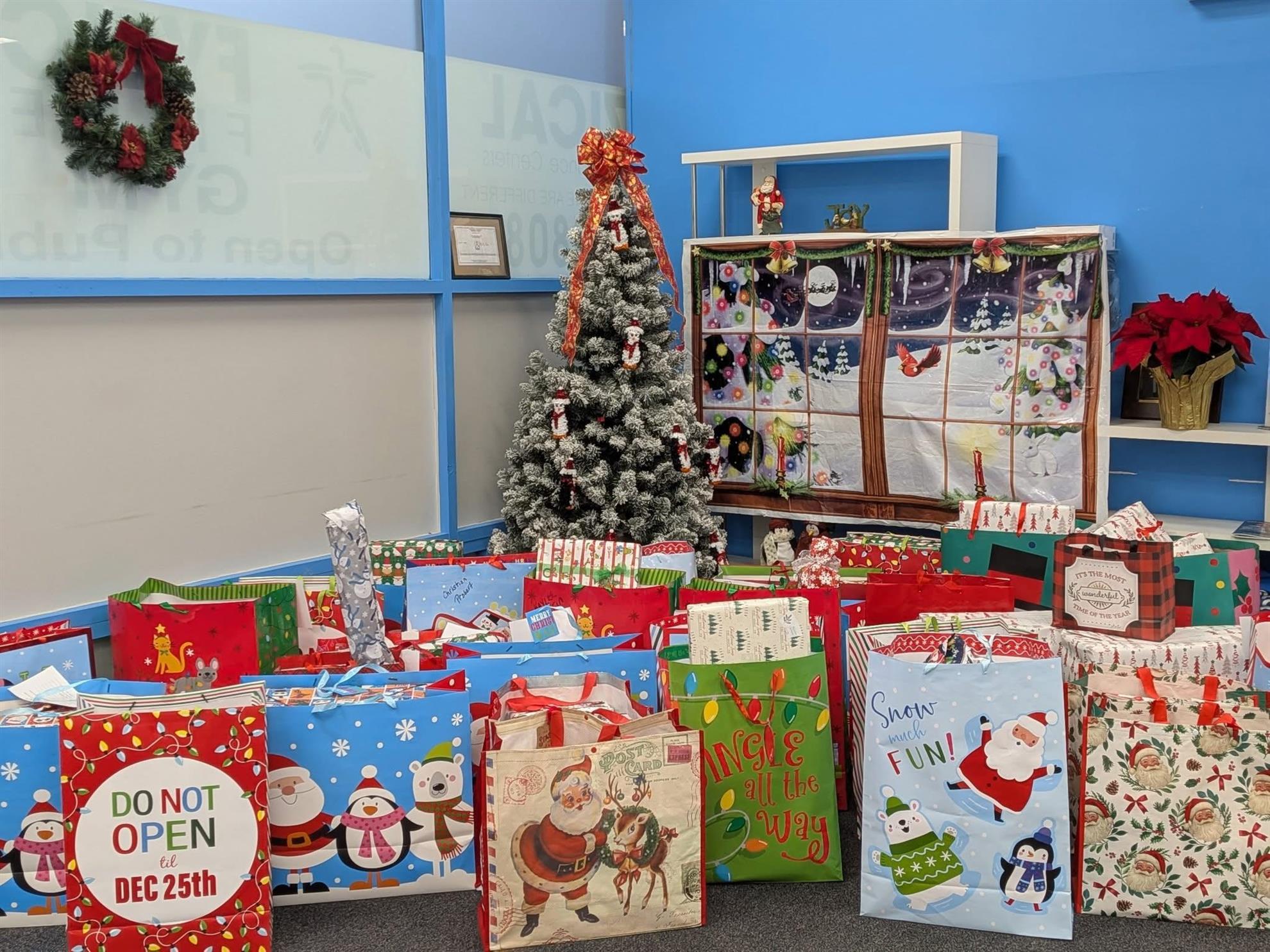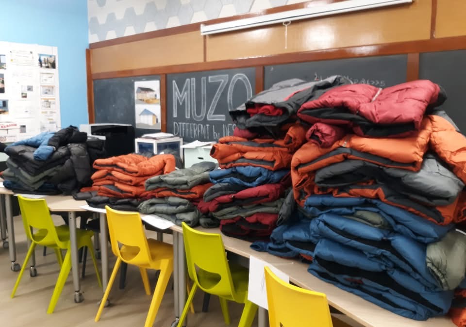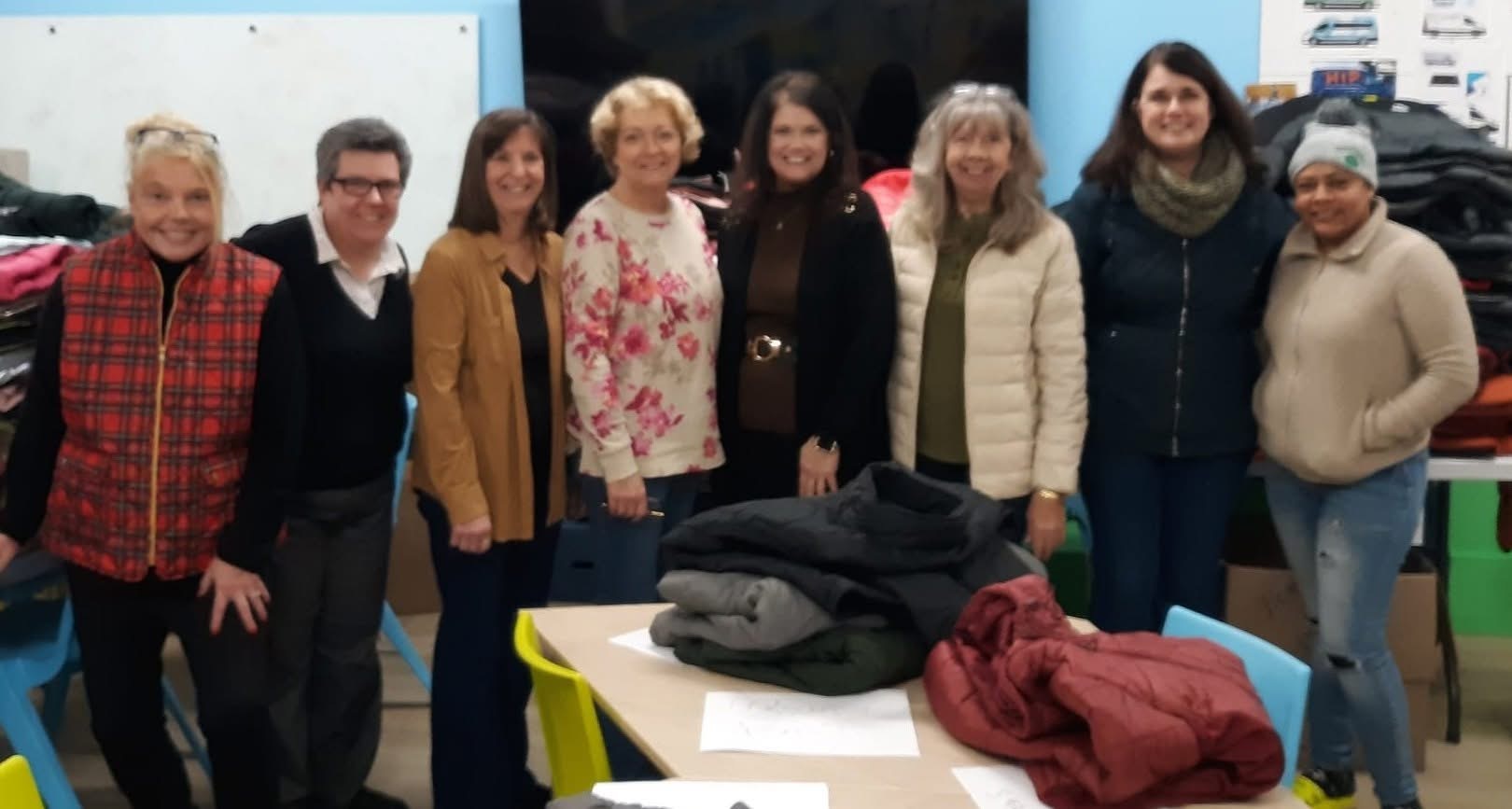 Hazleton Rotarians Nadine Bott, Michele Kushmeder, Nina Bonus, Anne Frey, Donna Dougherty, Joan Buffington, Michelle Genetti and Altagracia Arias, HIP Volunteer sort and pack coats delivered to local schools.