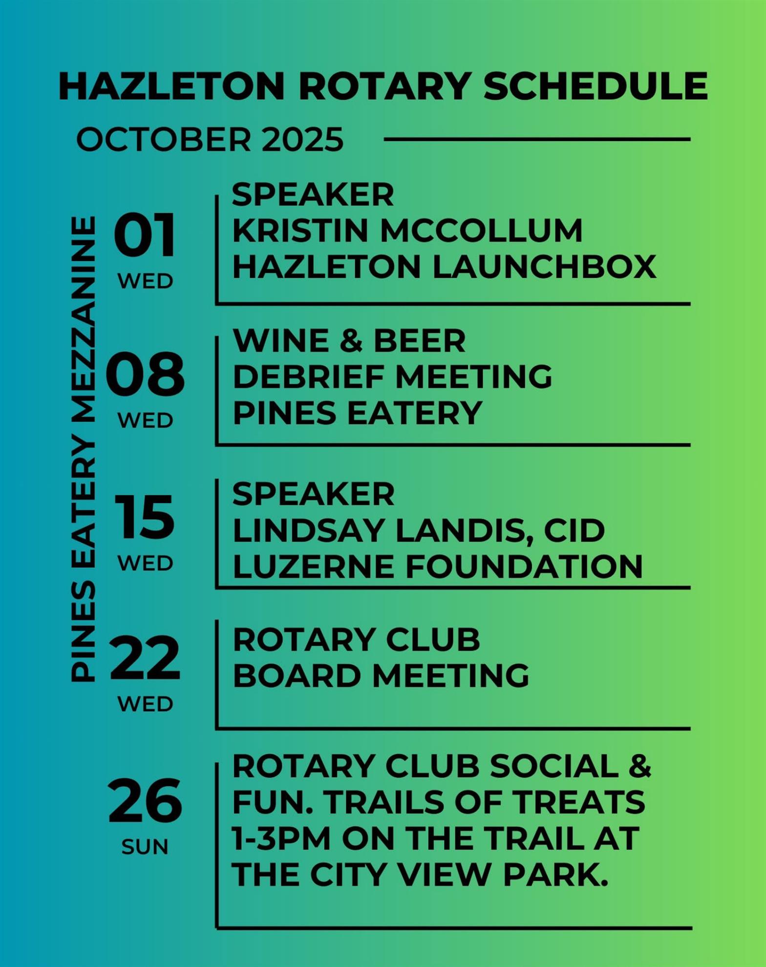 Luzerne Foundation-October 15, 2025Lindsay Landis of the Luzerne Foundation was our speaker. ![]() The Foundation works to enhance the lives of Luzerne County residents by evaluating and addressing community needs through strategic grantmaking, promoting responsible philanthropy, and connecting donors to causes that matter to them.