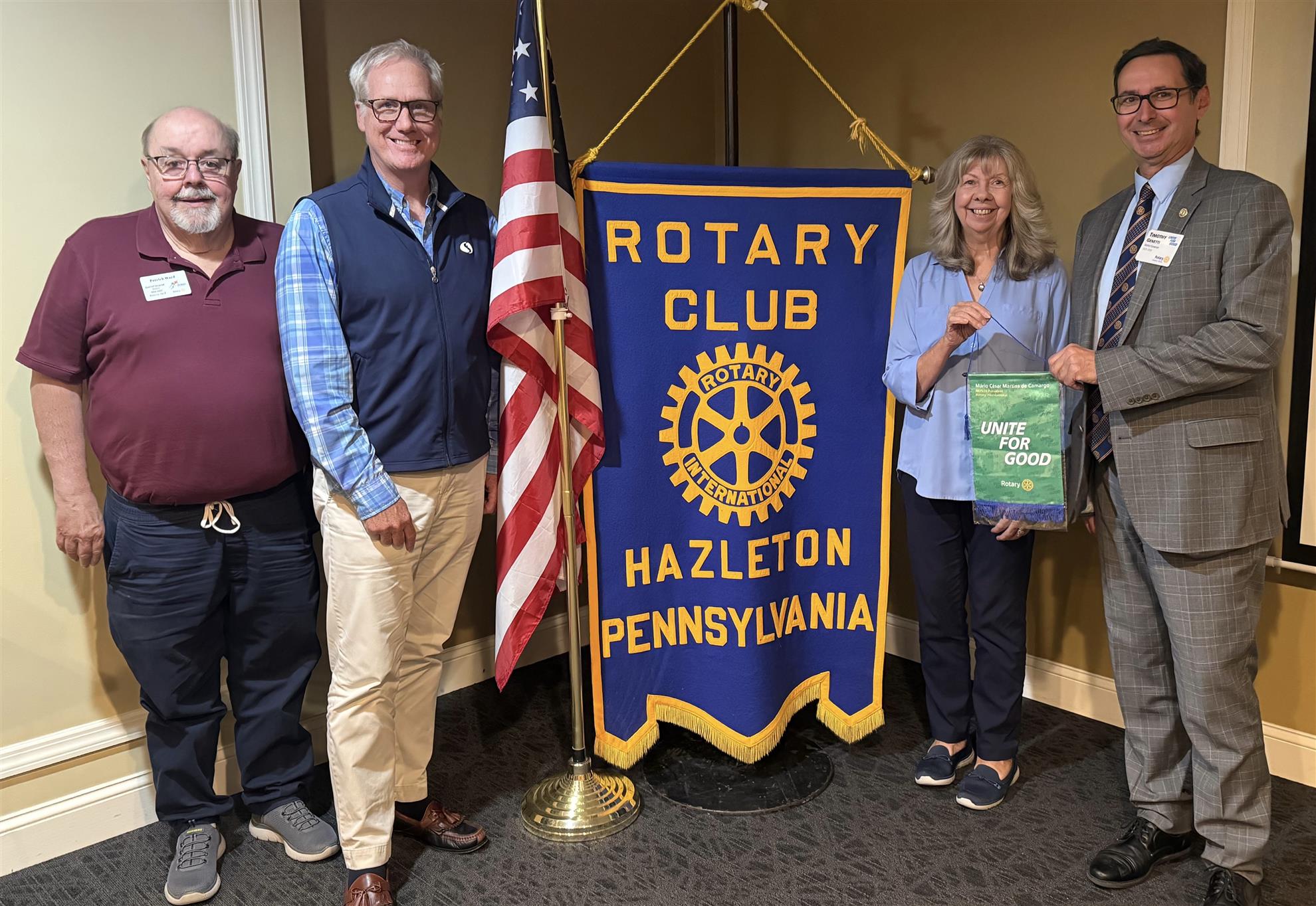 District 7410 Banner ExchangeRotary District 7410 held its annual banner exchange. Incoming District Governor Tim Genetti of our Hazleton club was inducted into the Ballard Society, which was started by Hazleton Rotarians Jim and Nancy Ballard for clean water projects. Past President Gordon Bigelow donated $1000 on behalf of Tim for his induction into the Society. Tim was then inducted as District Governor for the upcoming 2025-2026 year. Area Assistant Governors, including Hazleton Rotarian Pat Ward as well as soon-to-be DGE Andy Lane Chapman and DGN Rob Oldroyd were sworn in for their respective roles. Congrats to Tim and the entire Leadership Team! ![]() ![]() ![]() |